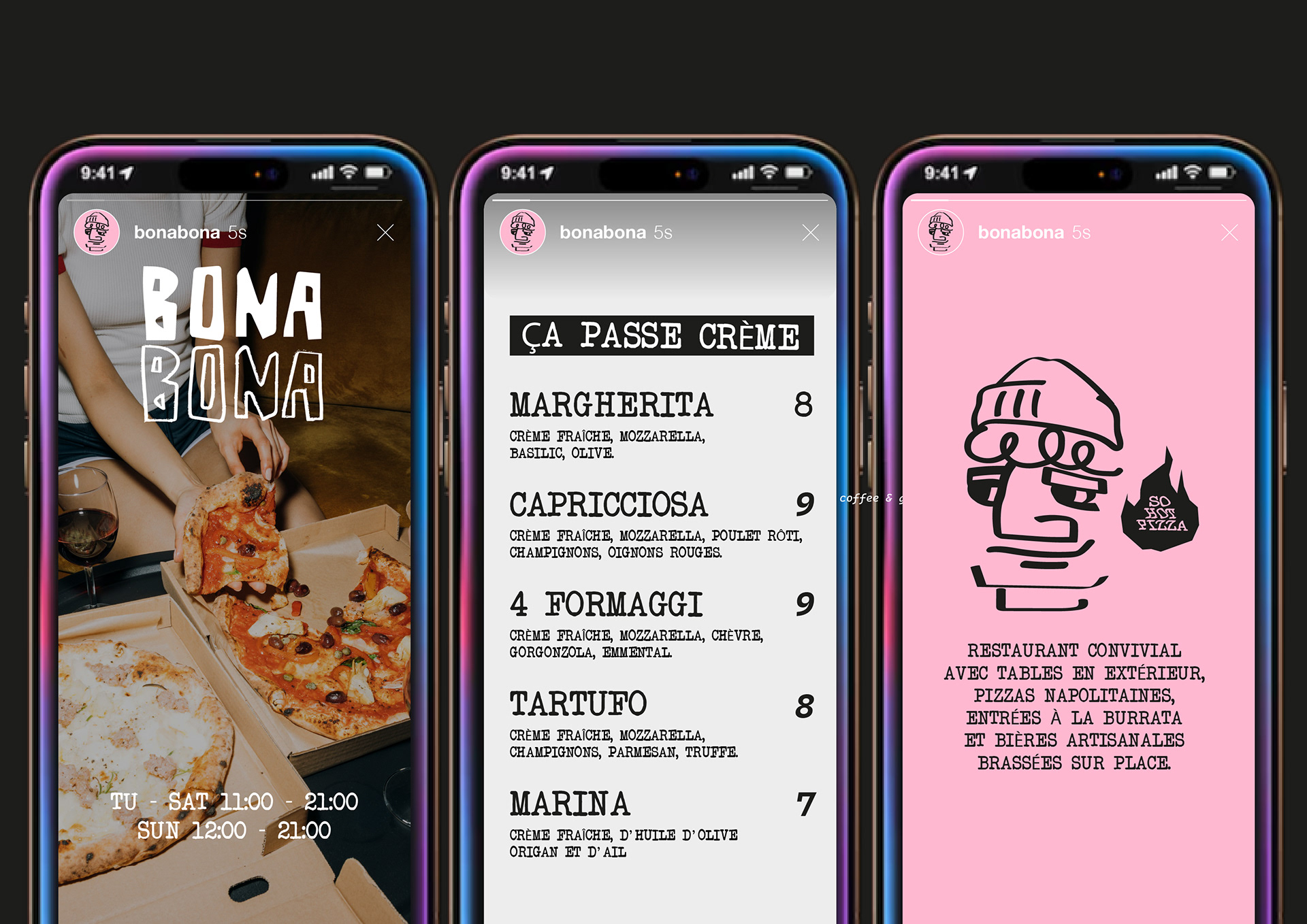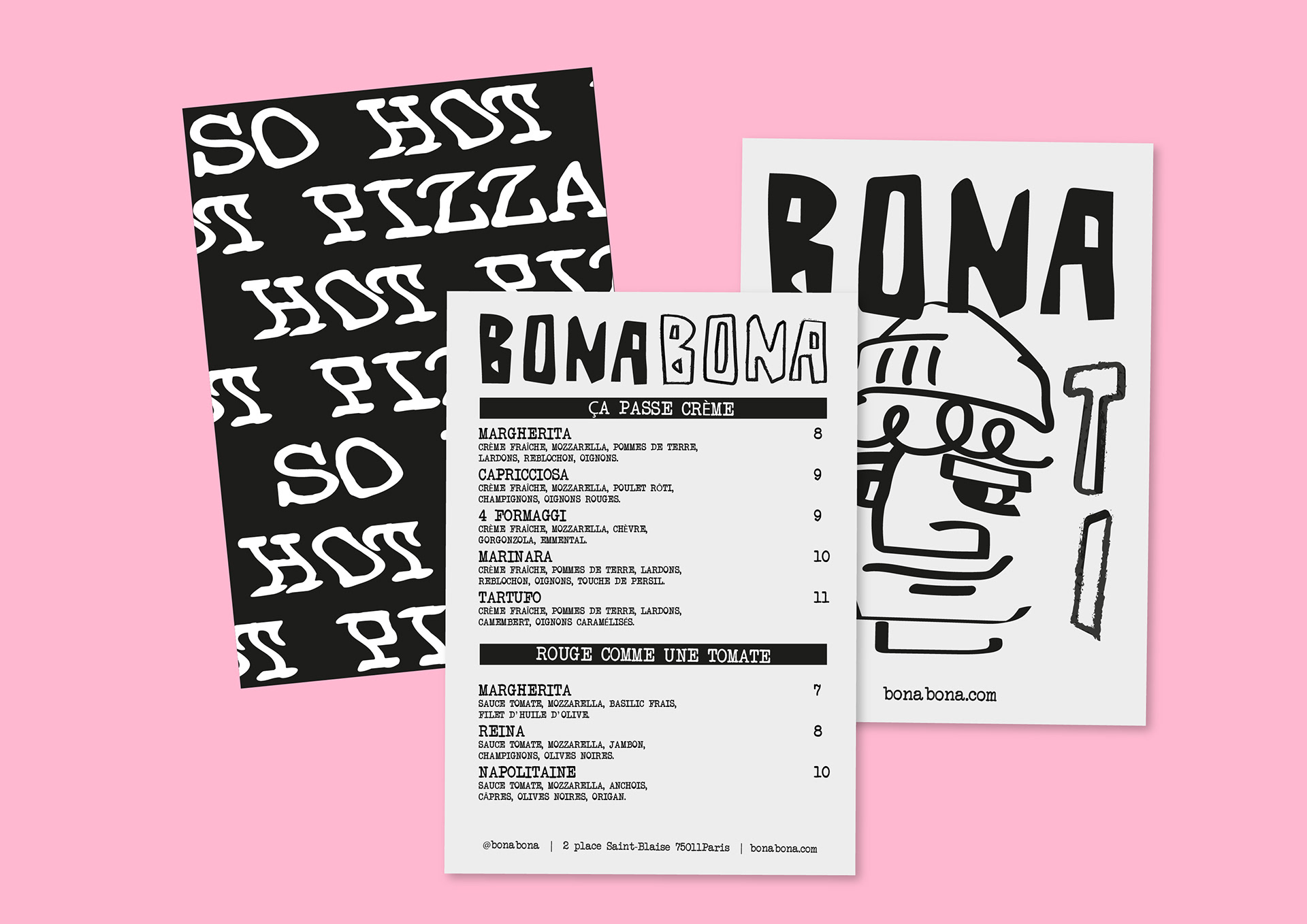 1. Concept et positionnement : slice & partage Pour Bona Bona, l’angle retenu est celui de la pizza de caractère : fine, croquante, généreuse, à partager ou à apprécier à la part, dans la lignée de l’esprit “slice” de Rori. Le positionnement se décline ainsi : Une offre accessible et contemporaine, mêlant pizza à la part et pizzas entières. Une identité de marque qui joue la carte de l’élégance, sans cliché de pizzeria classique. Une expérience culinaire complète : nourriture, ambiance, décor, service 2. Éléments de style empruntés à Rori Pour donner une touche “signature”, voici quelques influences graphiques / stylistiques que j’ai retenues de Rori Paris : Ambiance rétro / néo-70’s : luminaires chromés, murs laqués rouges, mobilier design, une atmosphère où chaque détail compte. Esthétique “slick & clean” : un design simple, percutant, sans surcharge, ce qui rappelle l’esprit épuré des lieux contemporains. Approche gastronomique de la pizza : usage de recettes audacieuses (miel pimenté, pickles, variations “white”, “potato”, saisonnières) pour sublimer chaque part. Palette contrastée & matériaux expressifs : rouge, touches de métal/chrome, couleurs saturées mais maîtrisées, pour un rendu visuel impactant. On retrouve cela chez Rori avec ses murs rouges, ses éléments chromés, ses choix forts de design. 3. Logo & identité visuelle Bona Bona Pour le logo de Bona Bona, on opte pour : Une typographie audacieuse, contemporaine, avec des contrastes forts. Un symbole (pizza slice stylisée, ligne radiale, motif d’ingrédient épuré). Une déclinaison visuelle respectant l’esprit minimaliste mais expressif emprunté à Rori. 4. Palette de couleurs & ambiance En s’inspirant des teintes repérées chez Rori : Un rouge profond / laqué pour marquer, évoquer la chaleur et l’appétit. Des touches crème / sable pour équilibrer et adoucir. Un gris foncé / noir ou charbon pour les contrastes, typographies et éléments structurels. Un accent métallique (chrome, acier, inox) en texture ou détails pour rappeler l’esprit contemporain. 5. Déclinaisons & applications L’identité Bona Bona se décline sur tous les supports : Packaging (boîtes, sacs, stickers) avec finitions sobres mais marquantes Menus imprimés et digitaux : concept “slice à la part”, menu modulable, pictogrammes d’ingrédients. Signalétique / enseigne intérieure : matériaux nobles, éclairage de caractère. Présence digitale : site web & réseaux sociaux avec une ligne graphique forte, visuels appétissants et lisibles. 6. Résultat & promesse L’identité de Bona Bona, inspirée de Rori Paris mais adaptée à ton univers, offre : Une marque distinctive qui se reconnaît instantanément. Une expérience cohérente entre le visuel, le goût, l’ambiance. Une crédibilité forte pour une pizzeria moderne, engagée et gourmande