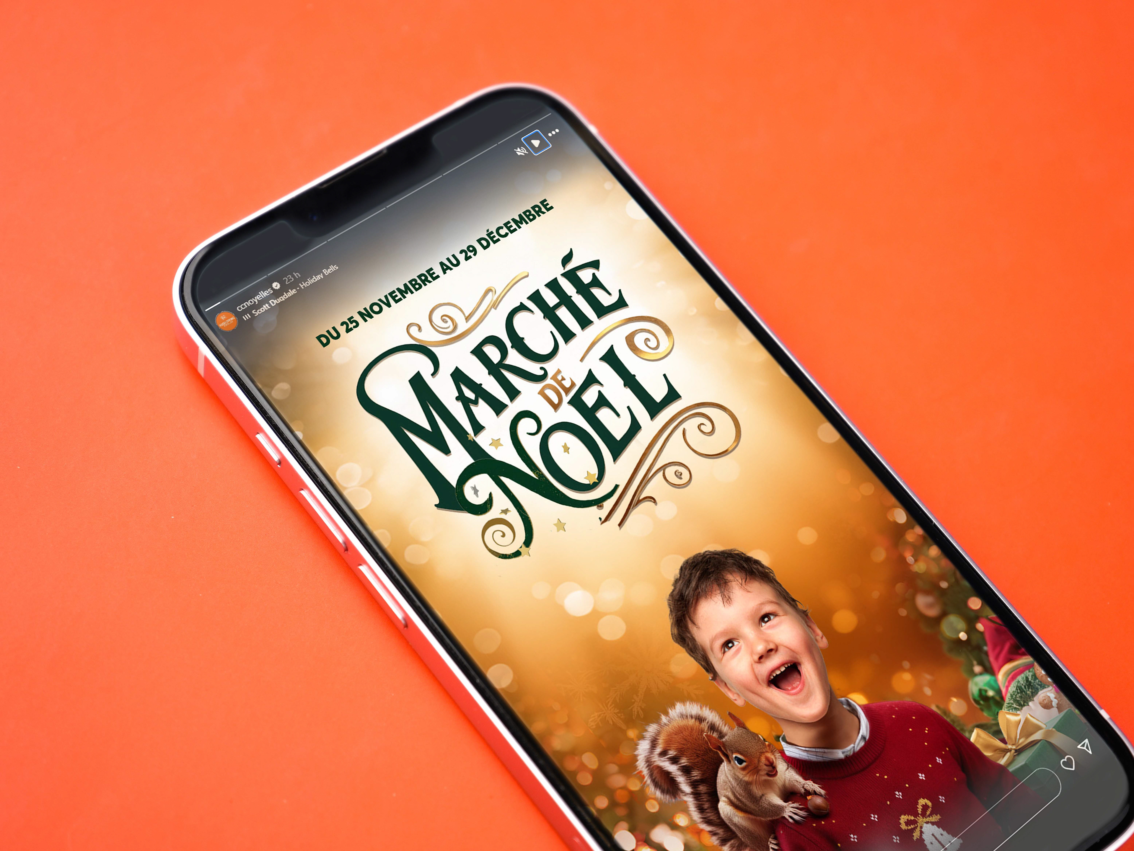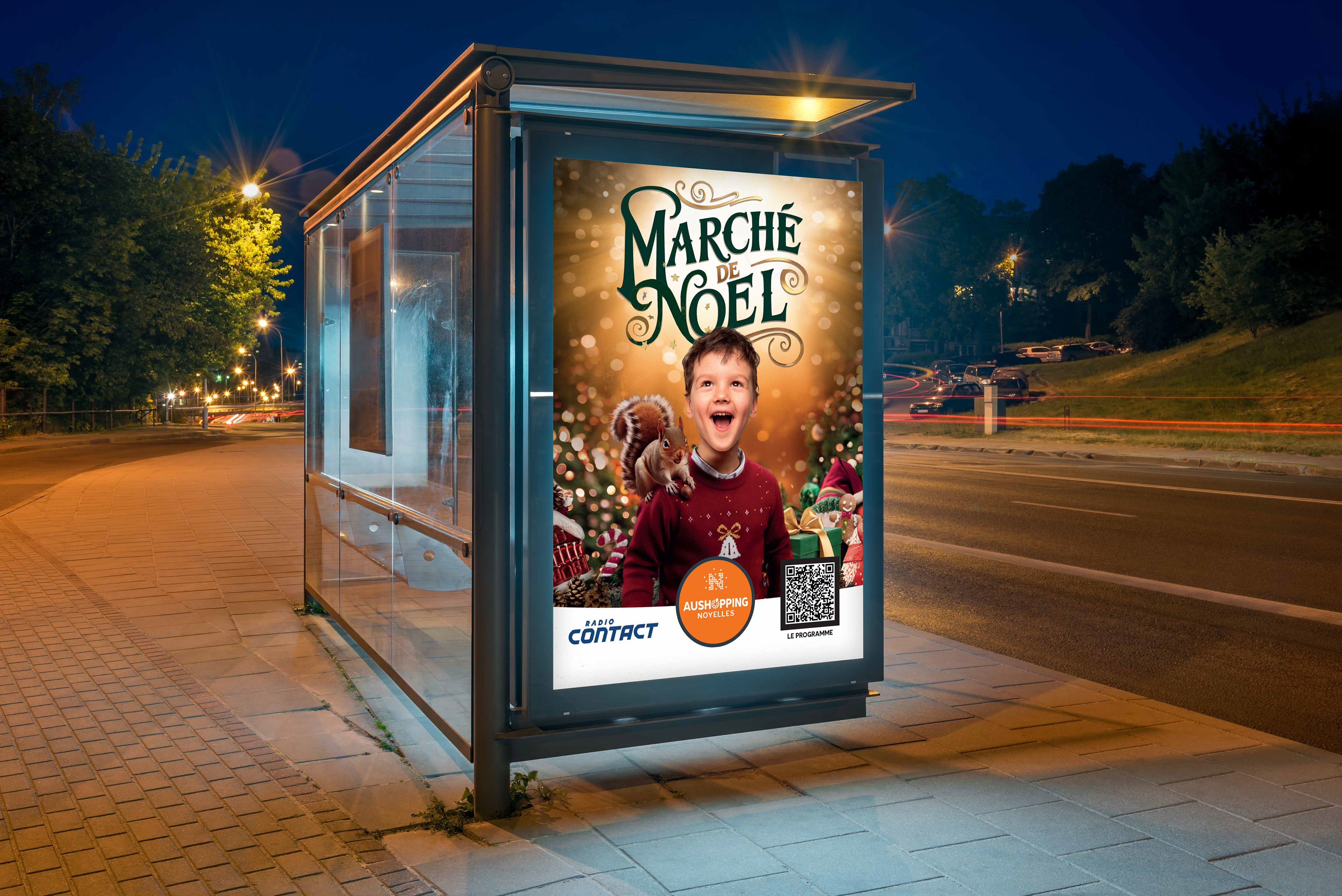 Une communication festive et immersive pour le Marché de Noël À l’occasion des fêtes de fin d’année, on a accompagné le centre commercial Aushopping Noyelles dans la conception d’une campagne de communication complète dédiée à son Marché de Noël. Objectif : créer une ambiance visuelle chaleureuse, festive et cohérente, afin de valoriser l’événement et d’attirer les visiteurs. Des supports print grand format et événementiels Pour habiller le centre et annoncer le marché de Noël, nous avons réalisé une large gamme de supports imprimés : Affiches et flyers au design festif et impactant, Totems et 4x3m pour une visibilité maximale, Un plan print du marché de Noël clair et attractif, permettant aux visiteurs de s’orienter facilement. Chaque support a été conçu en respectant l’identité visuelle d’Aushopping tout en intégrant des codes graphiques propres à l’univers de Noël : couleurs chaleureuses, typographies élégantes, visuels évocateurs. Une déclinaison digitale complète Au-delà du print, la campagne s’est prolongée en ligne grâce à la création de : Une page web dédiée regroupant toutes les informations pratiques du marché de Noël, Des visuels web adaptés aux réseaux sociaux et au site internet, Un motion design dynamique et festif, pour renforcer l’impact visuel et capter l’attention du public digital. Résultat : un événement mis en valeur sur tous les supports Cette campagne de Noël a permis au centre commercial Aushopping Noyelles de : donner de la visibilité à son Marché de Noël, attirer et informer efficacement les visiteurs, proposer une expérience immersive à la fois dans le centre et en ligne, véhiculer une image festive, chaleureuse et conviviale. Campagne de Noël centre commercial. Marché de Noël centre commercial Aushopping Noyelles. Supports print et web événementiel. Motion design communication retail. Direction artistique événement Noël.