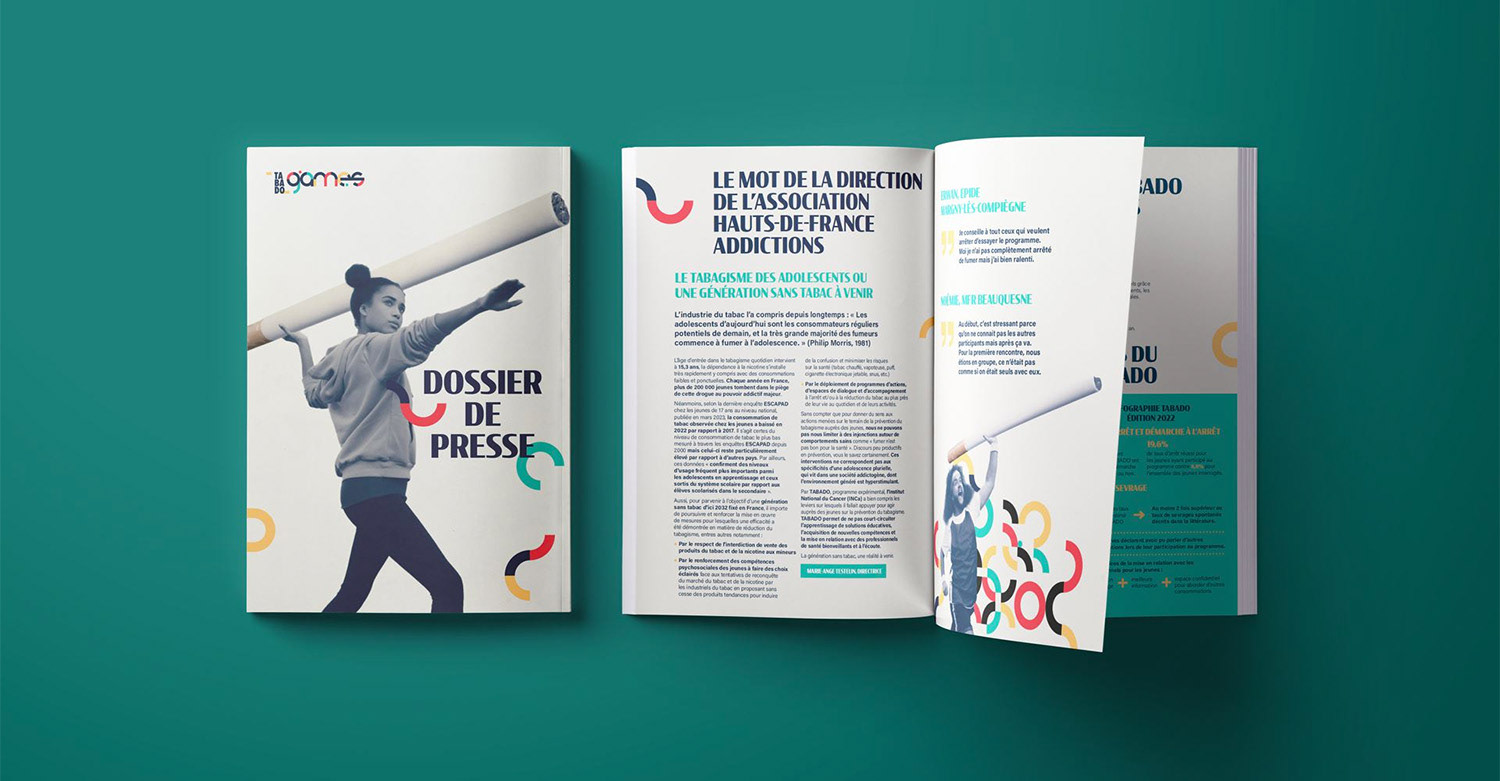 Une communication claire et impactante sur un sujet de santé publique Nous avons accompagné Addiction Tabac dans la conception d’un dossier de presse professionnel et percutant, destiné à informer, sensibiliser et valoriser leurs actions dans la lutte contre le tabagisme. Notre mission : repenser la mise en page et l’esthétique graphique tout en respectant la charte visuelle existante de la structure. L’objectif était de garantir une parfaite cohérence visuelle, tout en apportant une nouvelle dynamique éditoriale et graphique adaptée aux médias et partenaires institutionnels. Un design au service de l’information Le dossier de presse a été conçu avec une mise en page claire, hiérarchisée et accessible, afin de faciliter la lecture et la compréhension des messages. Nous avons travaillé sur : Une structuration fluide des contenus (introduction, chiffres-clés, missions, témoignages, contacts presse), L’utilisation de repères graphiques issus de la charte Addiction Tabac, Une palette colorimétrique cohérente, qui renforce la crédibilité et l’identité de la structure, Une mise en avant des éléments visuels (pictogrammes, encadrés, photos) pour dynamiser la lecture. Résultat : un support professionnel et crédible. Ce dossier de presse permet à Addiction Tabac de : communiquer efficacement auprès des médias et partenaires, véhiculer une image professionnelle et cohérente, valoriser ses actions de prévention et d’accompagnement, renforcer sa visibilité dans le cadre d’un enjeu majeur de santé publique. Création dossier de presse santé. Mise en page charte graphique. Identité visuelle association. Dossier de presse professionnel. Studio graphique communication santé.