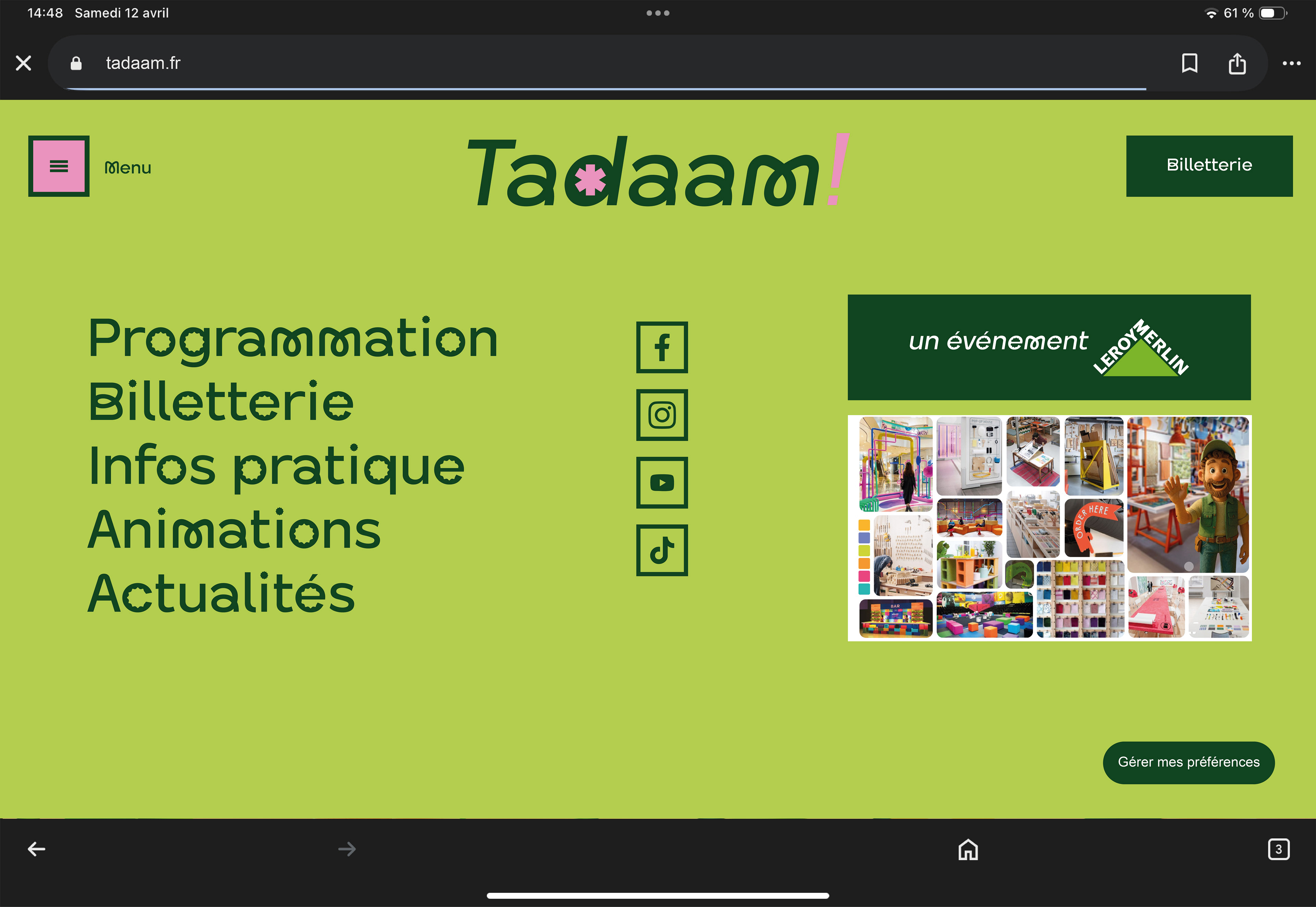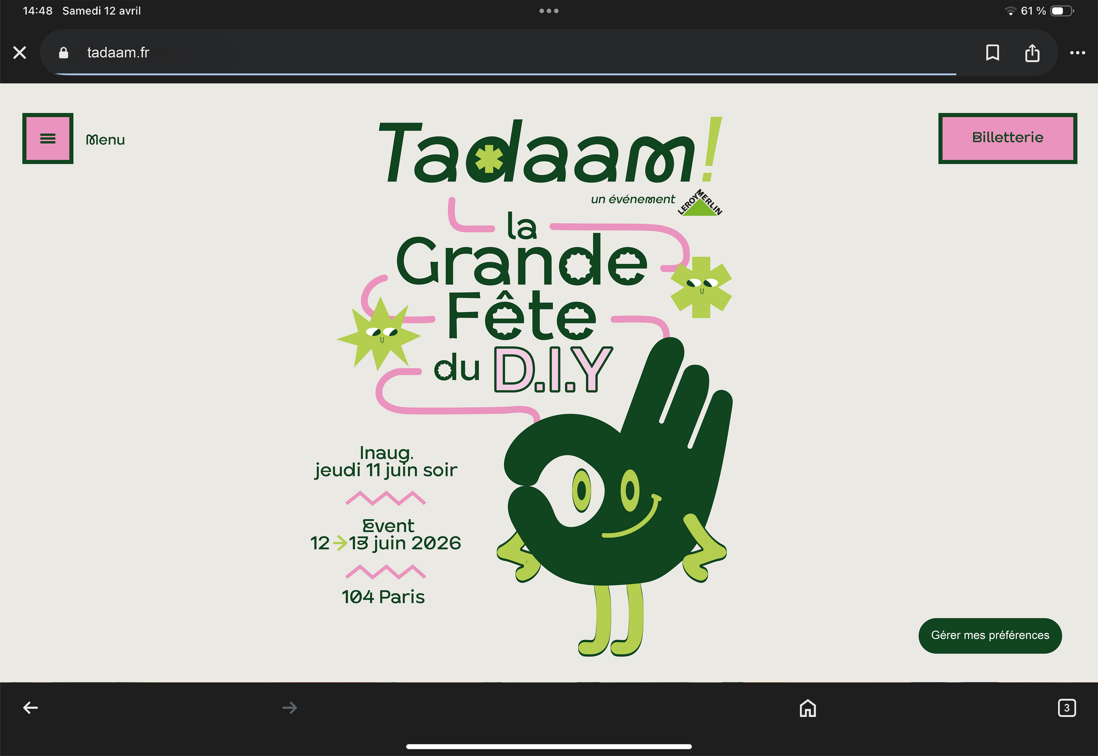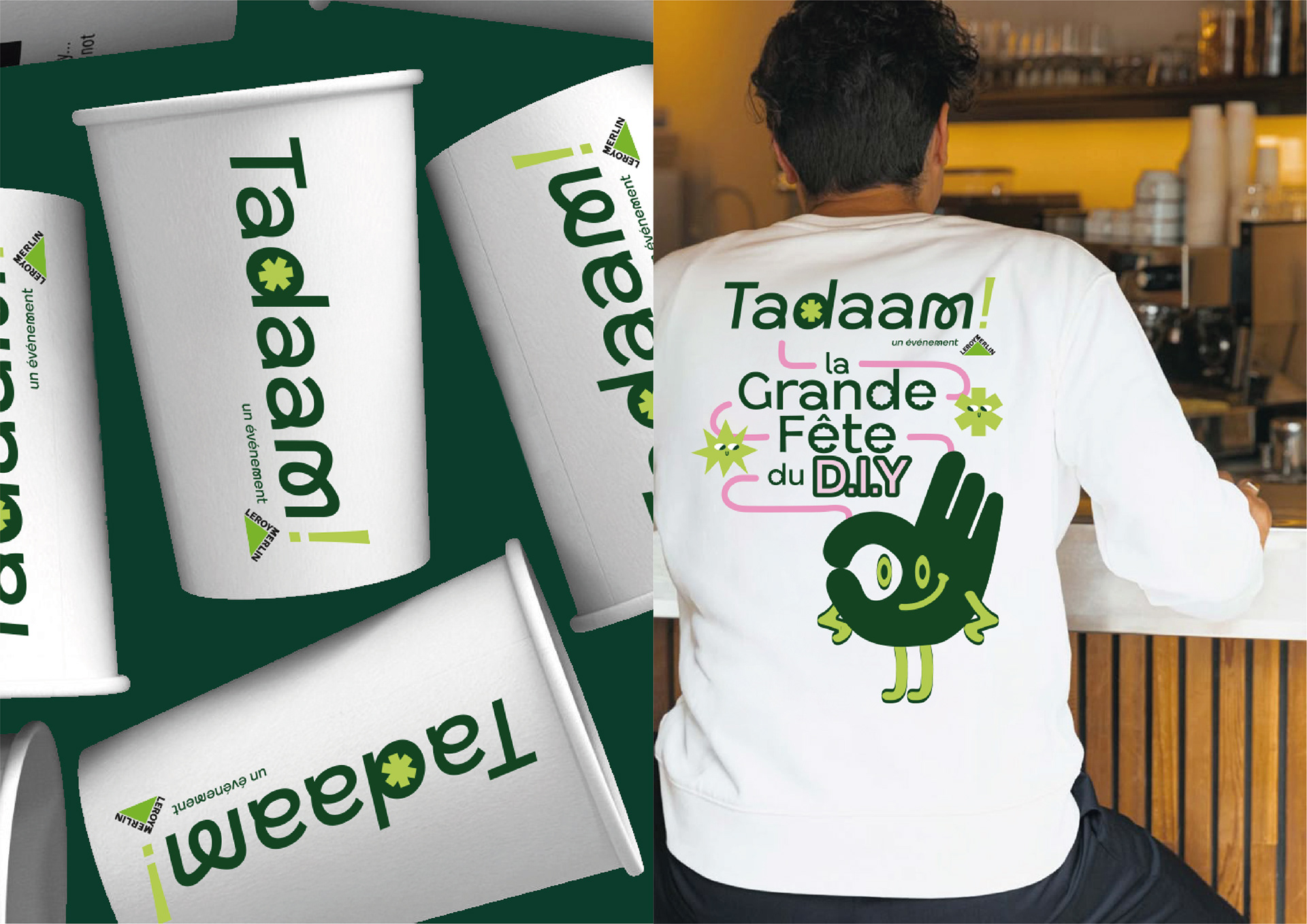 Cette affiche événementielle a été conçue pour incarner l’esprit créatif, festif et accessible du DIY (Do It Yourself). L’objectif était de traduire graphiquement le concept de « parc d’attraction du DIY » à travers un design coloré, pop et immédiatement reconnaissable. Une main comme symbole du DIY L’élément central de la composition est une main stylisée, qui incarne plusieurs dimensions : le geste manuel, cœur du bricolage et de la création DIY, la fierté du faire soi-même, la réussite, grâce au signe universel du « OK », clin d’œil direct au nom de l’événement TADAAM, synonyme de satisfaction et d’accomplissement. Une identité visuelle colorée et dynamique Dégradés pop : appliqués en ombre portée, ils renforcent l’aspect festif et joyeux du visuel. Ils suggèrent aussi des matériaux comme des planches de bois ou des structures à assembler, rappelant l’univers du bricolage et de Leroy Merlin. Typographie anguleuse et fragmentée : inspirée des plans de montage et des pochoirs industriels, elle traduit l’univers DIY de manière graphique et stylisée, tout en restant lisible. Texture grainée : ajoutée sur l’ensemble de l’affiche, elle apporte une touche contemporaine entre vintage et design actuel, en cohérence avec les tendances graphiques print et digitales. Une hiérarchie claire pour les informations pratiques Les informations de l’événement sont intégrées de manière structurée, garantissant une lecture fluide et une bonne hiérarchie visuelle. Le visuel garde ainsi toute sa force d’impact sans sacrifier la clarté. En résumé Cette création graphique traduit l’esprit de l’événement TADAAM : un univers DIY festif et accessible, une identité colorée, pop et impactante, un design qui associe créativité, ludisme et clarté. Une affiche événementielle sur mesure, qui attire l’œil, transmet l’énergie de l’événement et reflète parfaitement l’ADN du DIY.